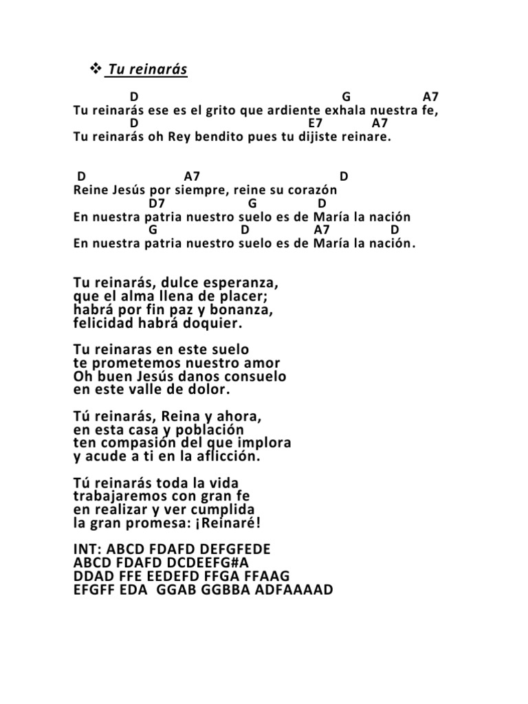 Canto Tu Reinaras Letra : Divino peito, que amor inflama em viva chama, de eterna luz!