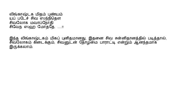 Lingashtakam Lyrics In Tamil Meaning : Lingakstakam is explained as excellent with meaning after each slokam.