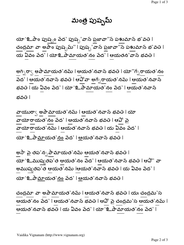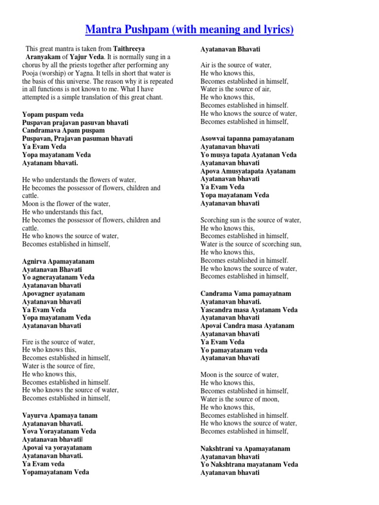 Mantra Pushpam Lyrics / Mantra pushpam ramakrishna math optimized.