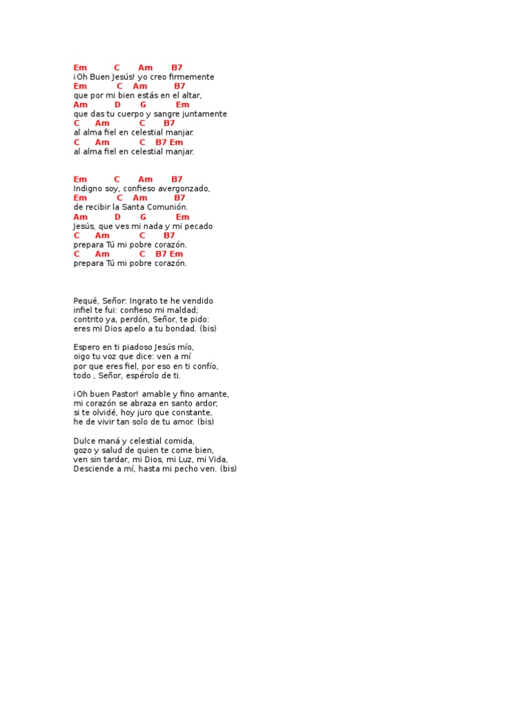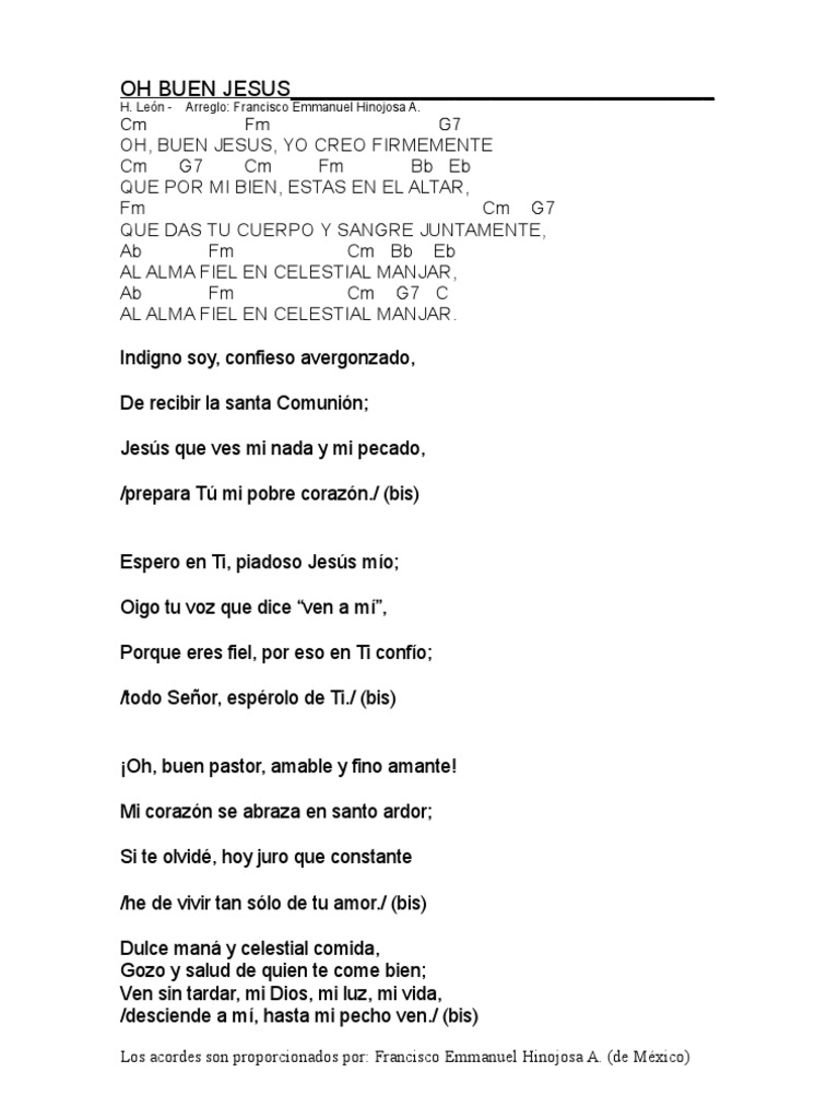 Oh Buen Jesús Yo Creo Firmemente Letra Y Acordes / Mi corazón se abrasa en santo ardor;