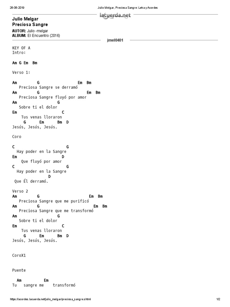 Preciosa Sangre Letra Y Acordes Julio Melgar / Aprenda a tocar a cifra de ya no soy esclavo (julio melgar) no cifra club.