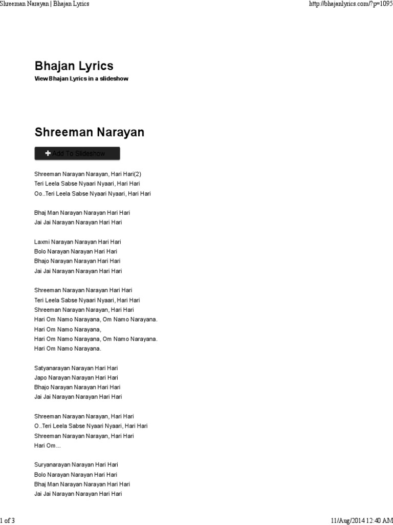 Shriman Narayan Narayan Hari Hari Lyrics Download - Religion song , kuldeep singh soda.