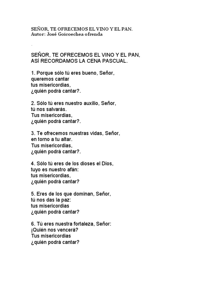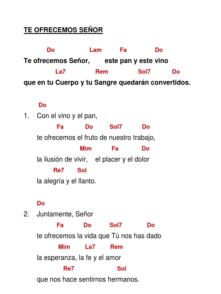 Te Ofrecemos Pan Y Vino Letra - Miles de letra de canciones en ingles y espanol con sus respectivos videos.