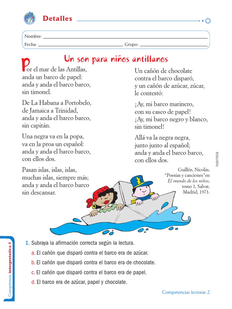 Un Son Para Ninos Antillanos Made With Spreaker By Ediciones La Luz On Soundcloud Hear The World S Sounds A continuación se muestra el análisis del poema un son para niños antillanos en la primera parte se hace la separación en sílabas del poemas marcando las sinalefas con el símbolo ___ y poniendo en negrita las sílabas tónicas poéticas.